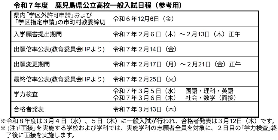 2026年度入試 鹿児島県公立高校の入試選抜方法