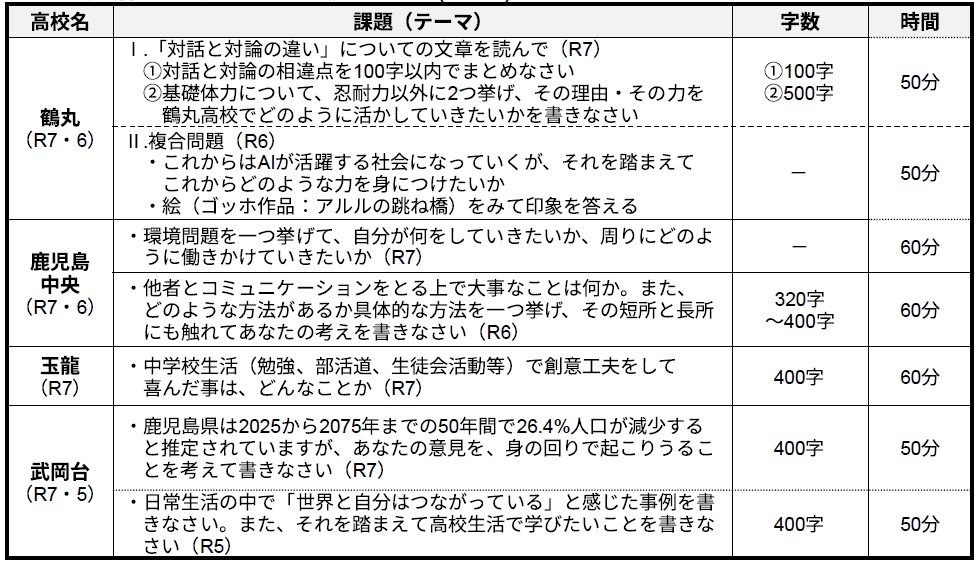 4.過去の作文・実技などの試験のテーマ(課題例) ※甲南や武岡台はプレゼンテーション型式。
