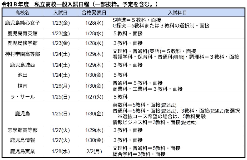 2026年度入試 鹿児島県私立高校 入試選抜方法