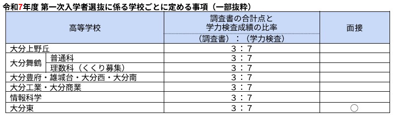 但し、安心院高校・由布高校の各普通科のような、連携型中高一貫教育の入学者選抜は含みません。